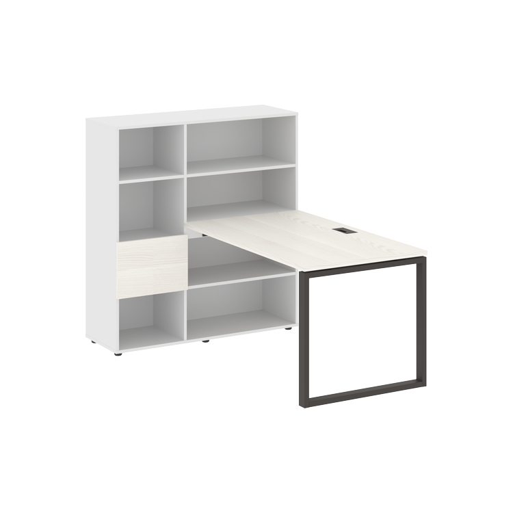 Каркасы стеллажей полностью из ЛДСП т.18 мм с кромками ПВХ т.2 и 0,45 мм, задняя стенка из ЛДСП. Комплектуется малой дверью в цвет столешницы и регулируемыми опорами h= 27 мм.