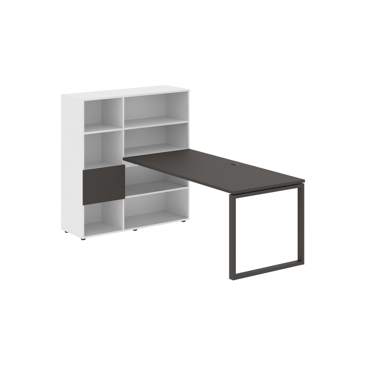 Столешница глубиной 800 мм, комплектуется регулируемой опорой О-образной формы из профиля трубы 60х30, комплектом телескопических траверс и двумя кронштейнами для крепления к стеллажу.