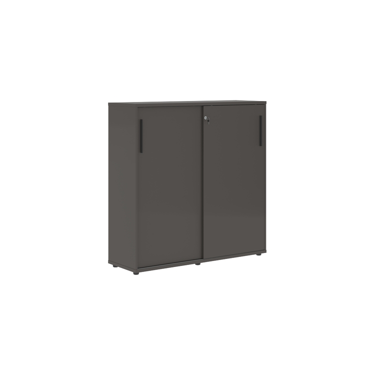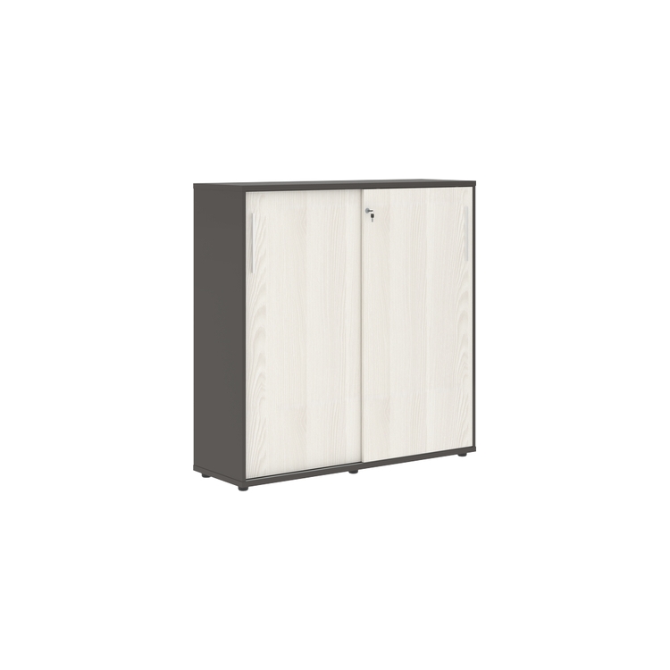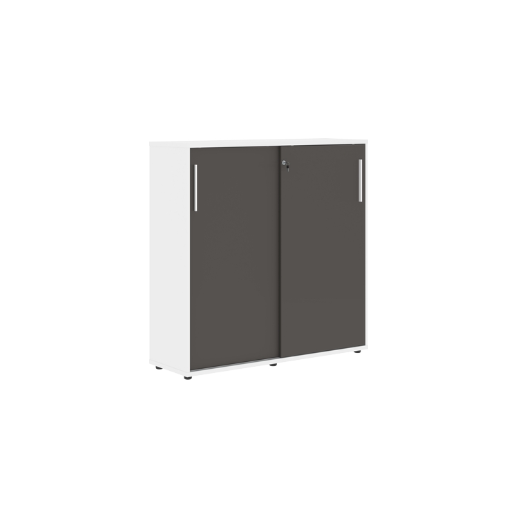 Шкаф комплектуется центральным замком для одновременного закрывания двух дверей, регулируемыми опорами h=27 мм и металлическими ручками.
