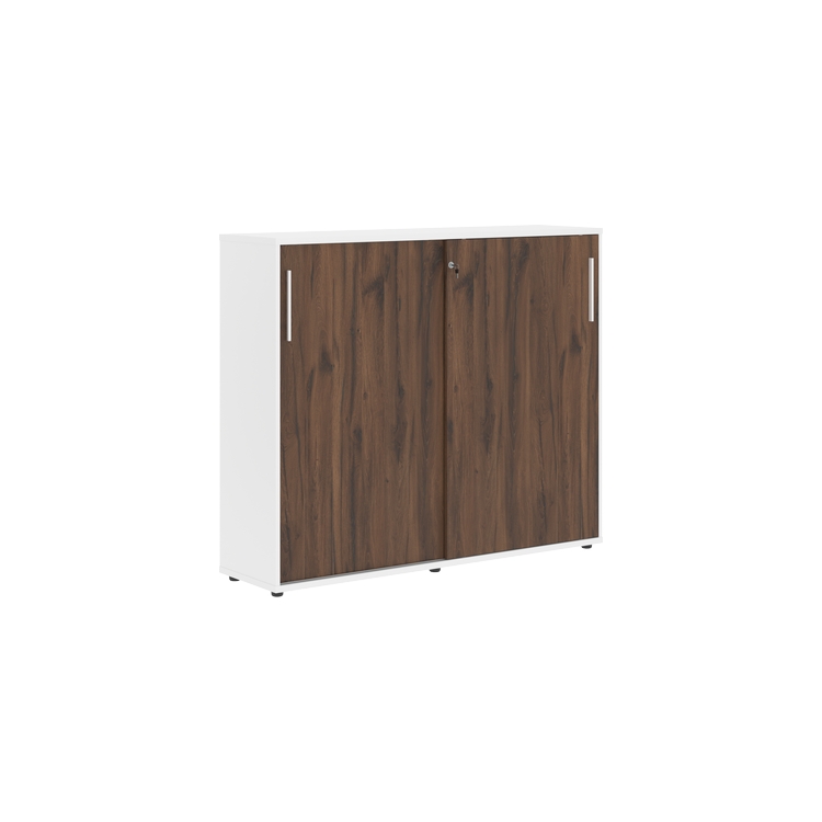 Шкаф комплектуется центральным замком для одновременного закрывания двух дверей, регулируемыми опорами h=27 мм и металлическими ручками.