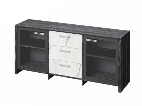Тумба трехсекционная с 2 дверьми FB-13-02.G. Древесина Графит/Мрамор Леванто белый [1110]