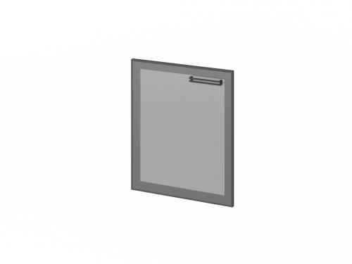 Дверь стеклянная в алюминиевом профиле, низкая. Для каркасов тумб F-12 и F-13. Левое исполнение.