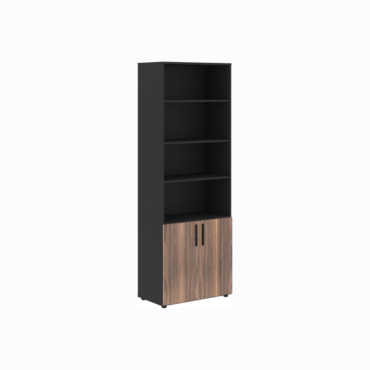 Каркас комплектуется полками из двухстороннего МДФ т.18мм с покрытием пленкой PET(ПЭТ) и кромками ПВХ т.1 и 0,45мм и регулируемыми опорами H=27мм.