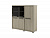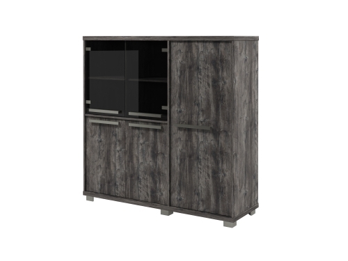Слева в двух секциях в нижней части - двери ЛДСП, сверху - стеклянные двери.